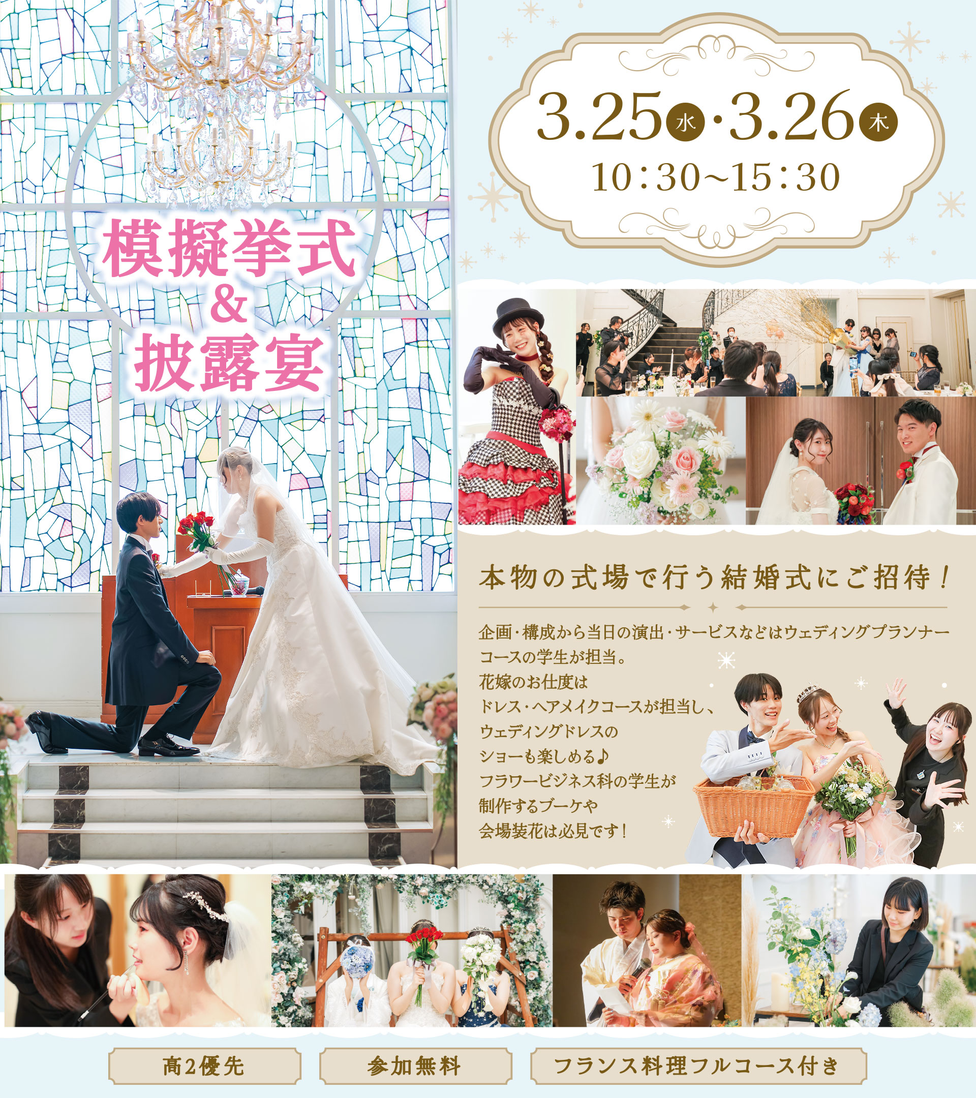 企画・構成から当日の演出・サービスなどはウェディングプランナーコースの学生が担当。