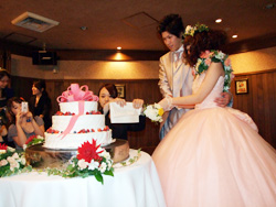2012年度の第3回模擬結婚式・披露宴を、6月6日(水)、名古屋市中川区山王の「ジョビアルパラッツオ」で行いました。結婚式は白いバージンロードと白い十字架が美しいチャペルで挙行されました。今回のテーマは「シック&キュート 」