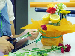 フラワービジネス科は【ビタミンカラーのフラワーアレンジ】お花だけでなく、レモンを使った生花のアレンジをしました!見るだけで元気になって、目からビタミン補給できそう!?(*@_@*)