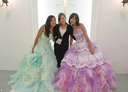 3学科合同で開催した、ヘアメイク&フラワーショーを楽しんだあとは、 ブライダルビジネス科は、花嫁気分で最新ドレス試着体験♪