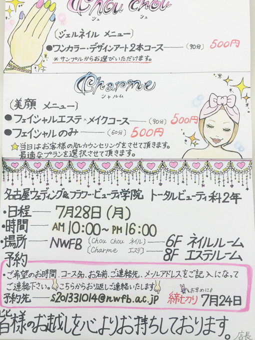 今年もトータルビューティ科による模擬サロンがオープンします。