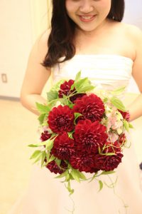 大人な女性をイメージしてかっこいいクレッセントブーケを目の前で作り上げてもらいました!