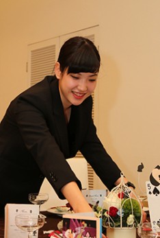 不思議の国のテーマに合わせた会場装花や、ブーケ、ヘアメイクなど、個性的に、とっても可愛く表現できていました!